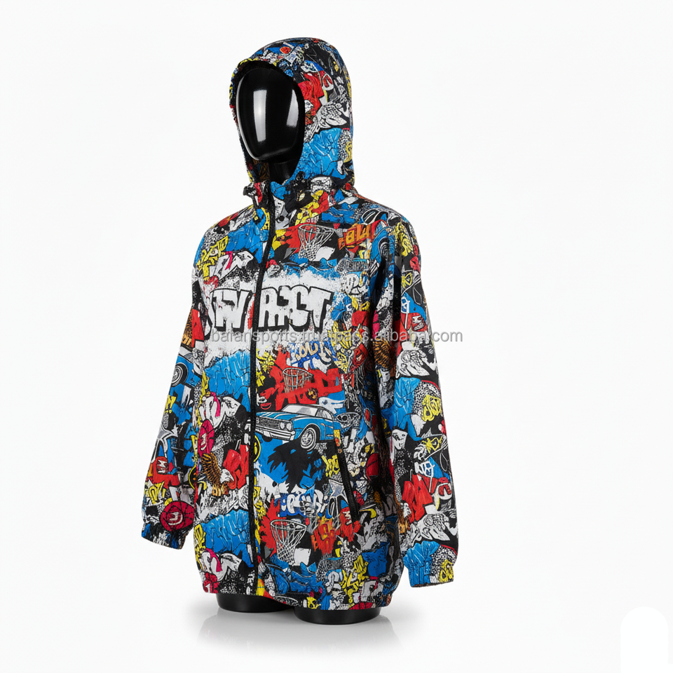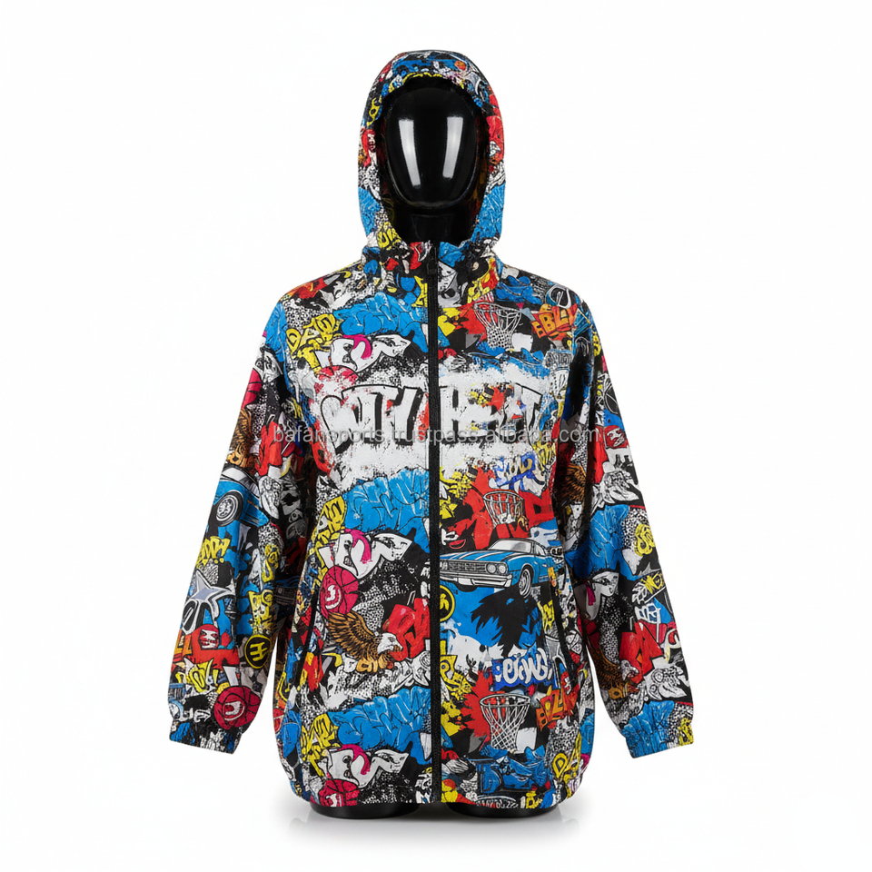 Women Hooded Windbreaker Jacket 120GSM Durable Polyester Fabric Graffiti Print Custom Logo Street Windbreaker Jacket For Women
