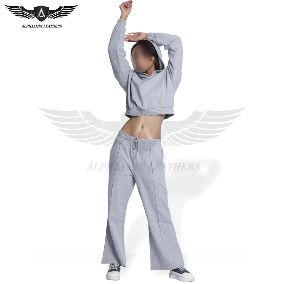 Women Hoodies And Trouser Set, In Gray Color Casual Wear Comfort Fit Best Quality Women Crop Tops Tracksuits