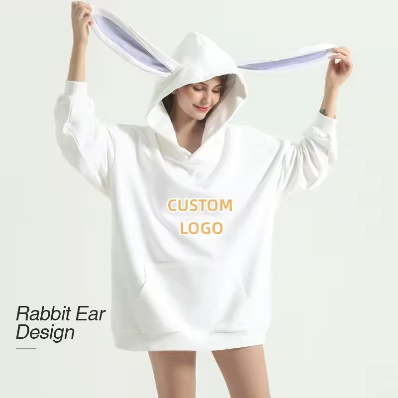 Men's Winter Hoodie with Applique Logo Printed Cute Bunny Long Ears Graphic Pullover 100% Cotton Oversized Fit
