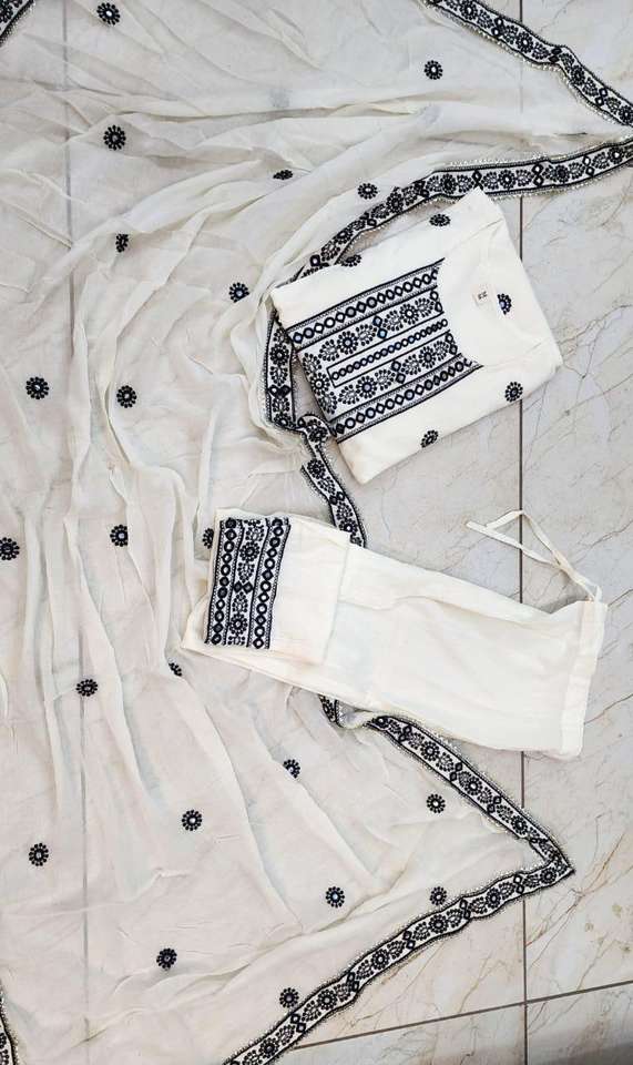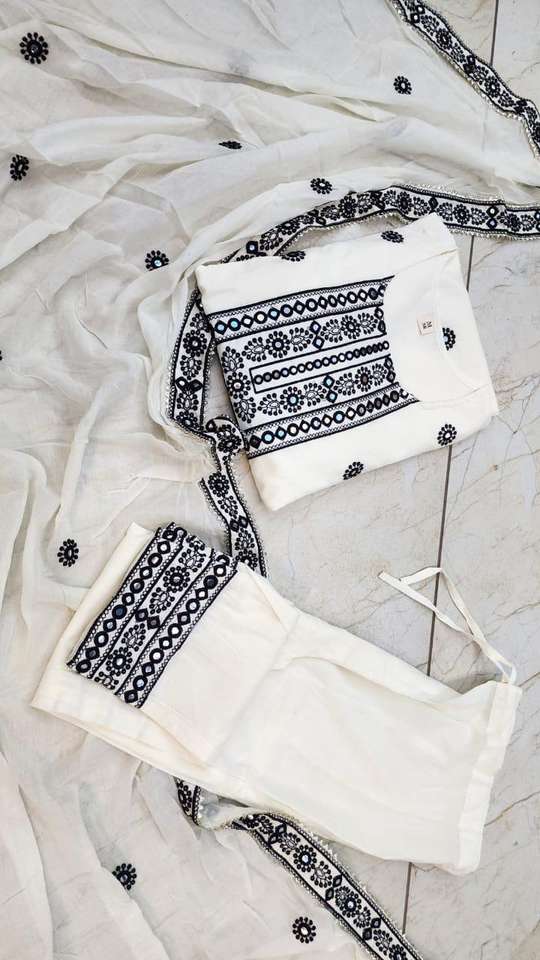 Product Name:Cotton Kutch Embroidery With Mirror Work Kurta Palazzo And Dupatta