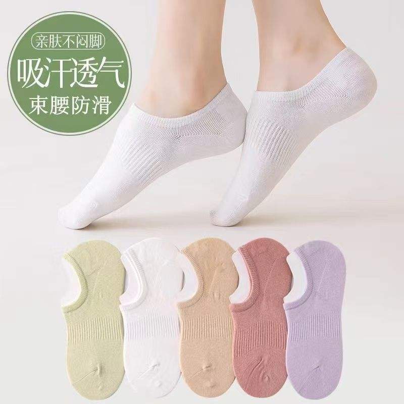 Women Invisible Ankle Socks Solid Color Sweat Absorbent Non Slip Summer Casual Wear