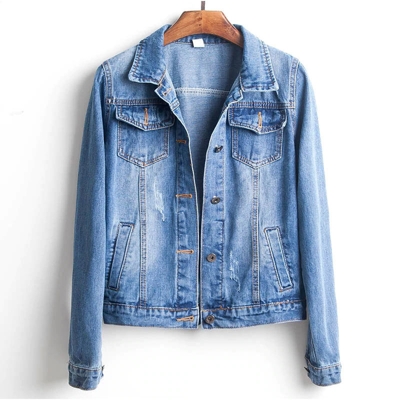 Women Jeans Jacket Short Denim Jacket Ripped Jeans Tops Slim Long Sleeve Casual Outwear Jeans Jacket