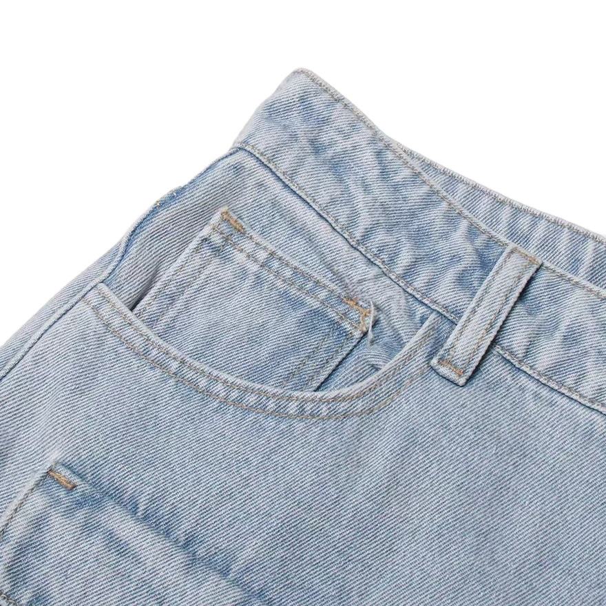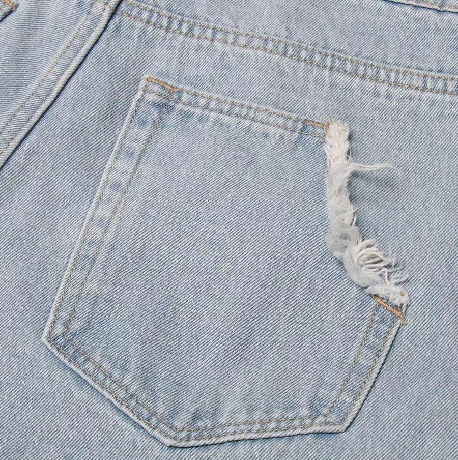 Vintage, Button, Ripped, Washed, Pockets, Fake Zippers, Side StripeDecoration