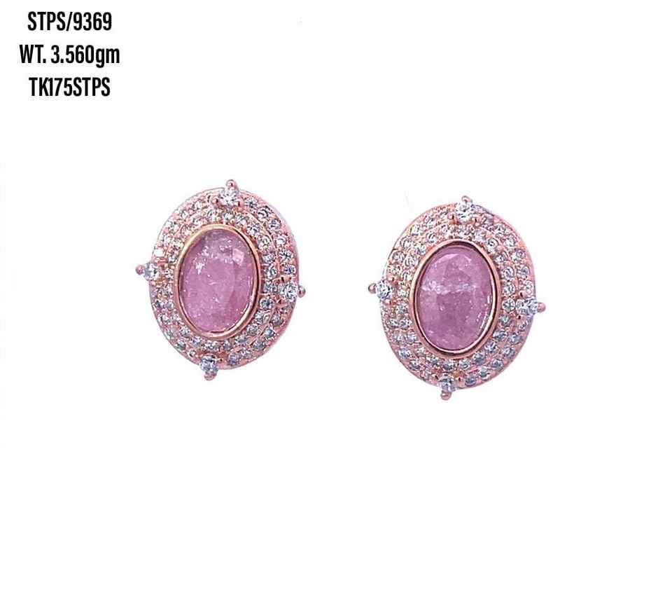 Women Jewelry 925 Sterling Silver Stud Earrings White Cz Cubic Zirconia Oval Shaped Pink Gemstone Earrings