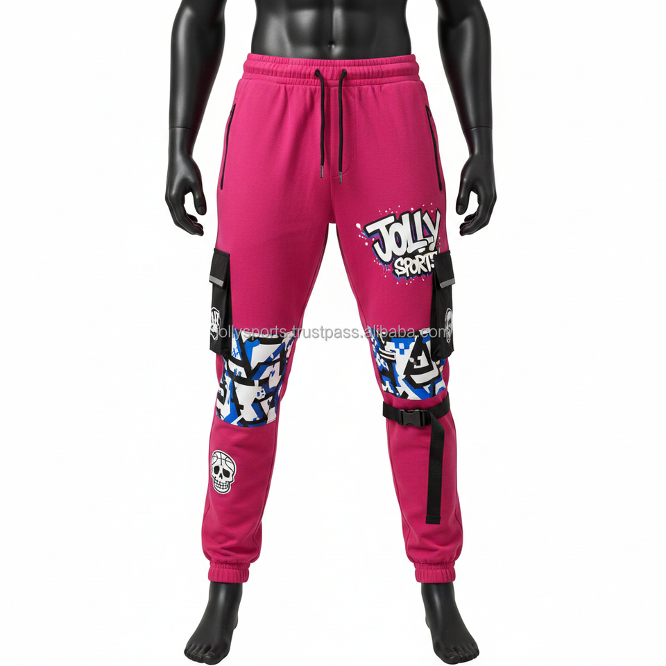 Women Jogger Pant Premium Cotton Polyester Fleece 280 GSM Pink Panel Cargo Style With Custom Heat Transfer Logo women's pants
