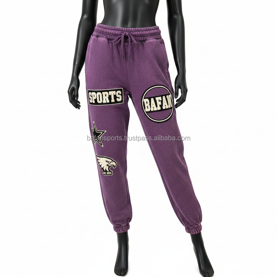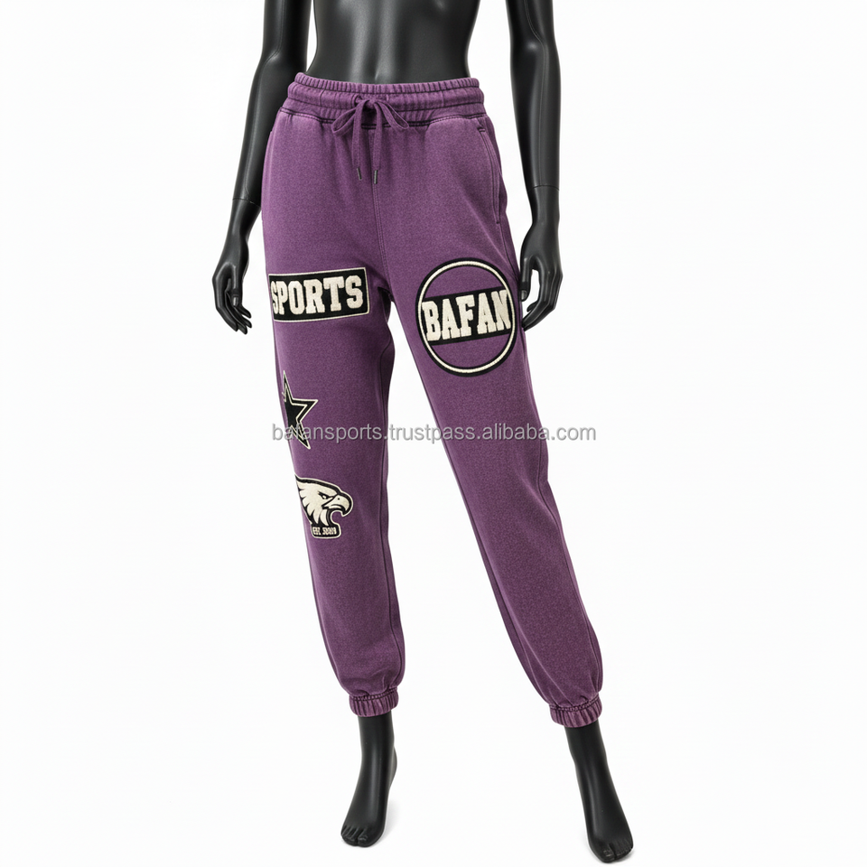 Women Joggers Thick Fleece Fabric Feel Purple Streetwear Custom Logo Chenille Patch Sports Design Trendy Fit Pants women's pants