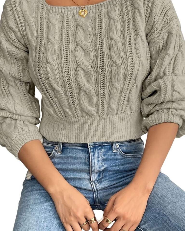 Women Khaki Cable Knit Cropped Sweater Soft Warm Winter Pullover Stylish Long Sleeve Stretchy Casual Knitwear Fashion