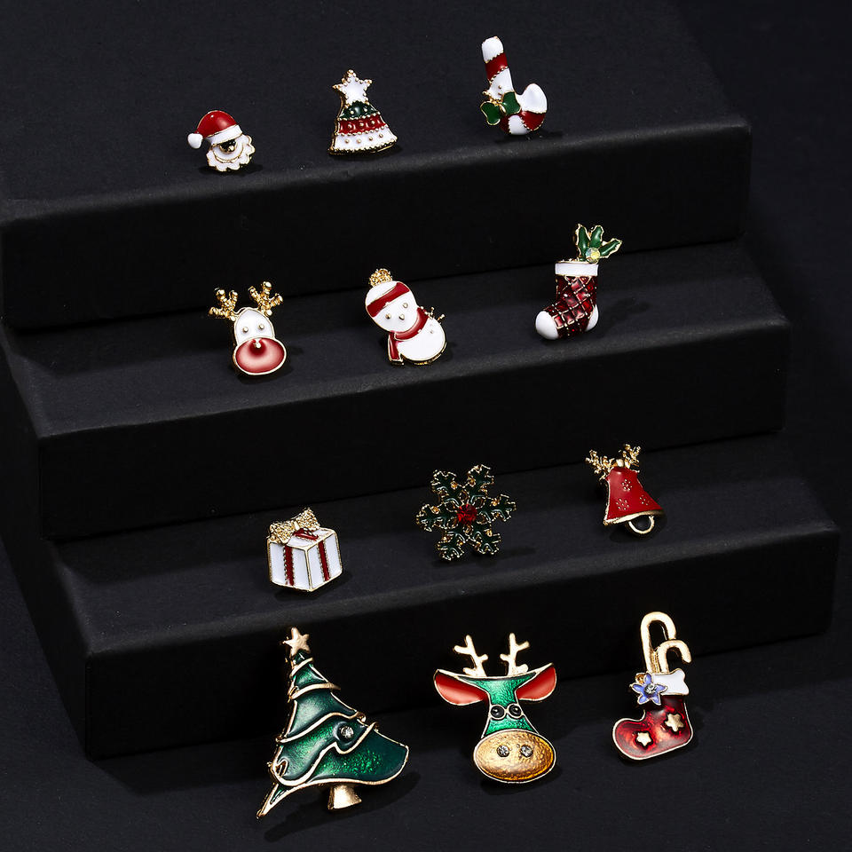 Women Kids Cute Santa Claus Elk Crutch Gift Box Hat Tree Glove Star Bear Christmas Jewelry New Year Christmas Brooch Sets