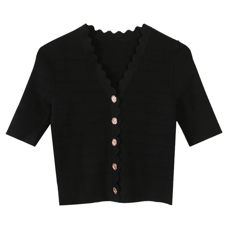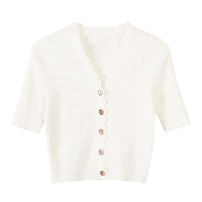 Women Knit Sweater Cardigan Plain Thin Button Crop Short Sleeve Summer Casual Blouse Knitted Top Knitwear