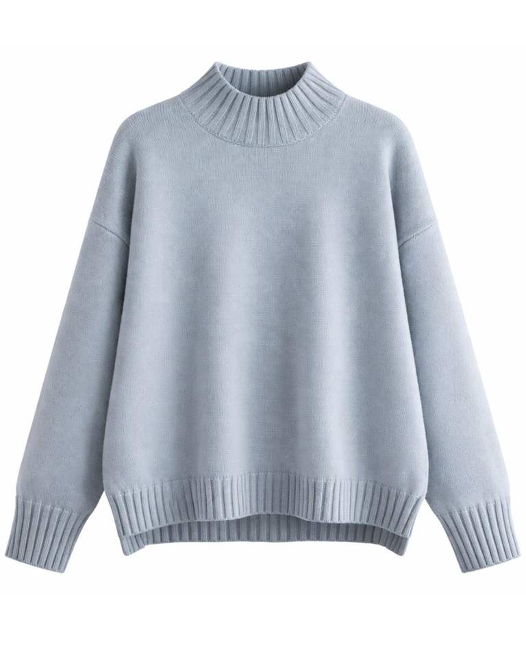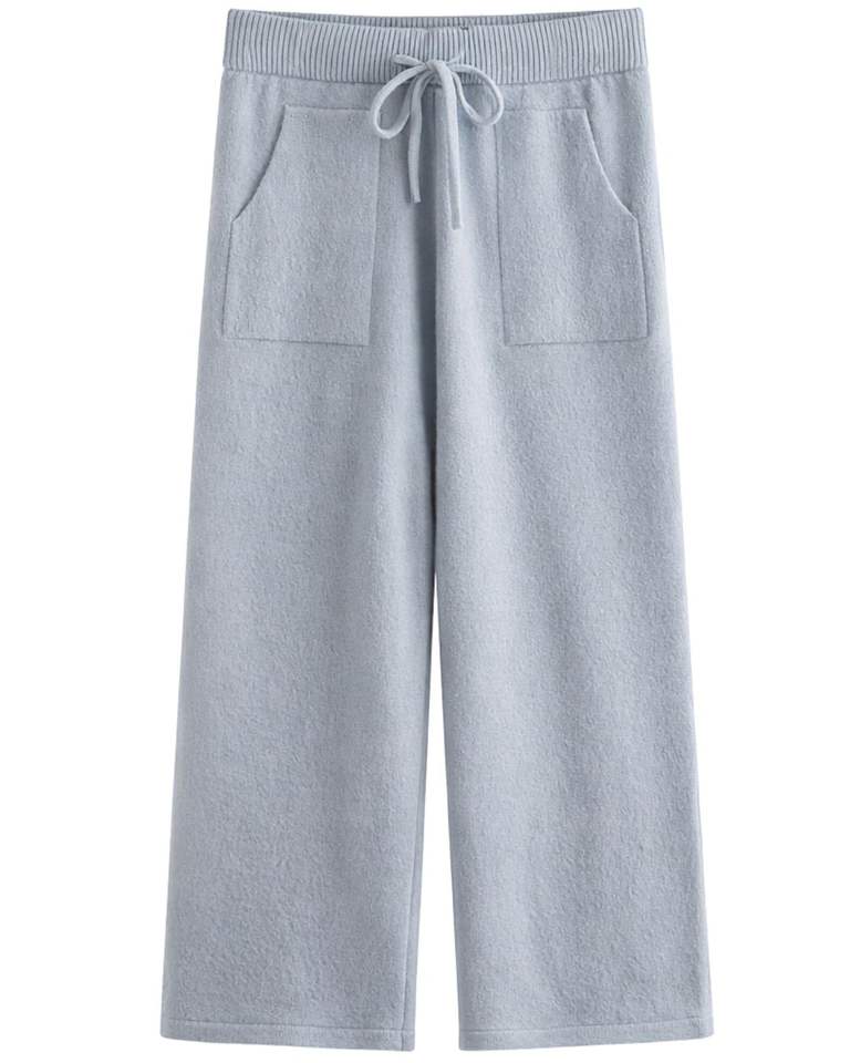 Women Knitted Lounge Set Light Blue Crew Neck Sweater And Elastic Waist Pants Soft Winter Casual Two Piece Outfit For Women Cozy