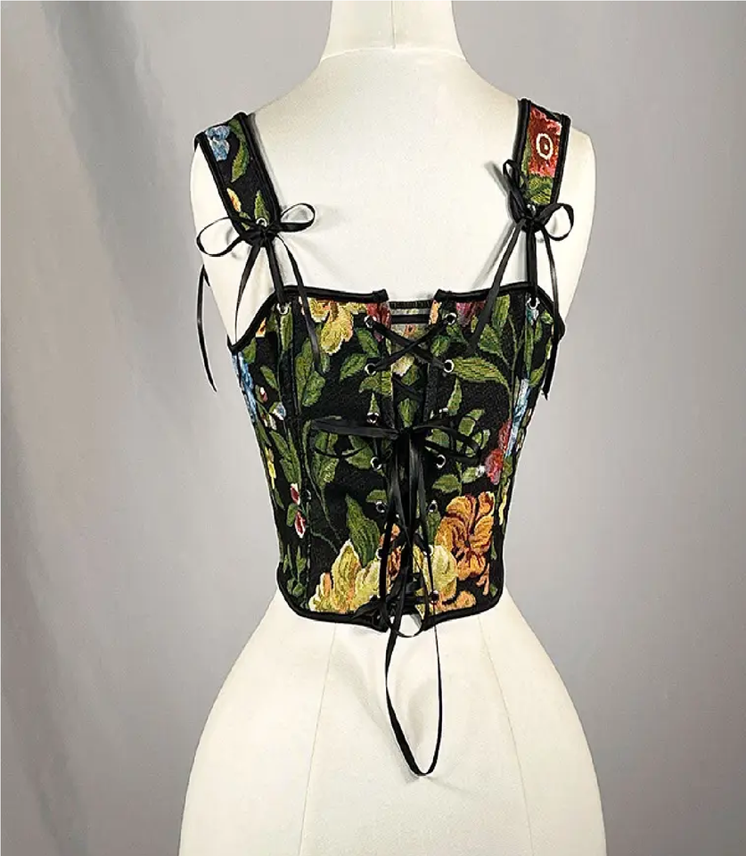 Women Lace Up Front Tie Back Crop Top Floral Corset Top Vest Victorian Plus Size Bodice - Buy Lace Up Front Tie Back Corset