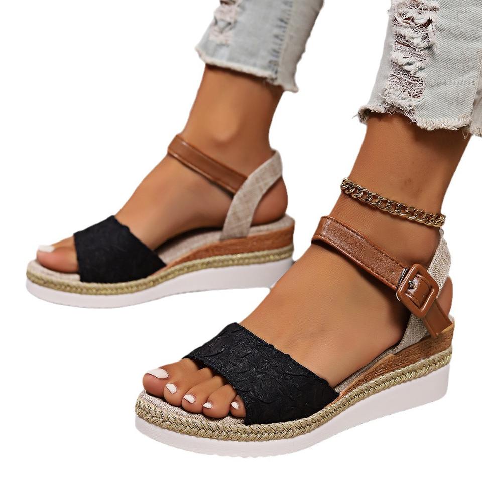 Women Large Hemp Rope Bottom Pine Cake Shoes Thick Sole Ladies Slope Heel Fish Mouth Women's Sandals