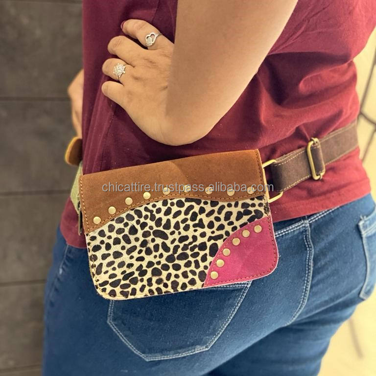 Women Leather Hip Pocket Belt Colorful Leather Waist Belts Mobile Use Leather Waist Belts
