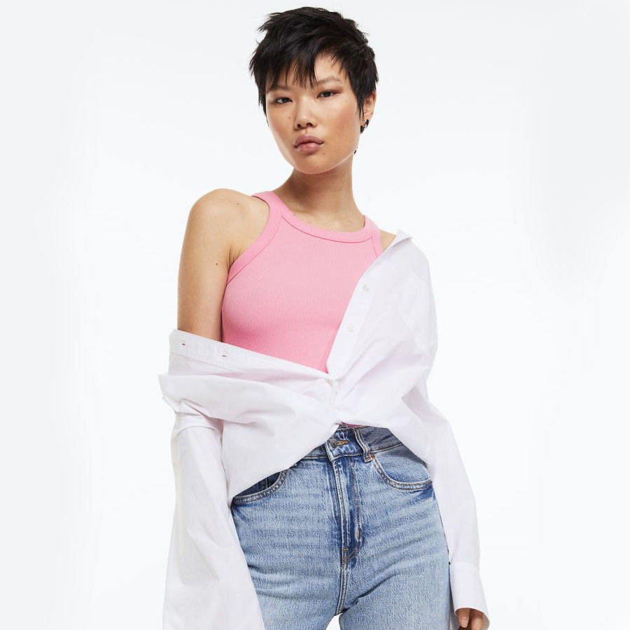Women Light Pink Colour Ribbed Material Sleeveless Tank Top for Sale Women Stylish Summer Vests in Cheap Rates