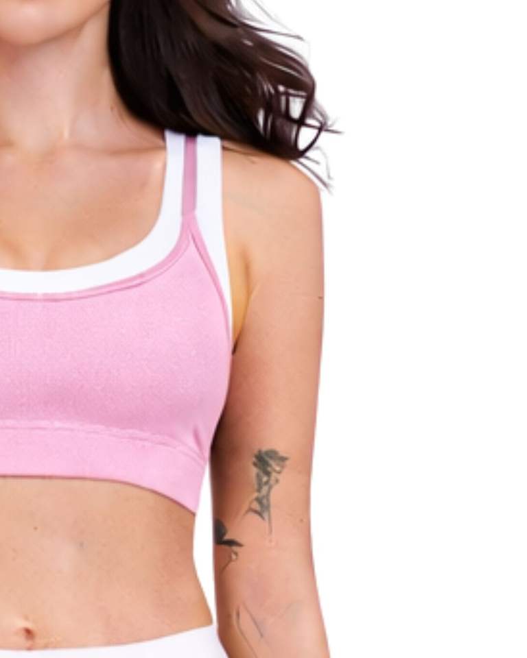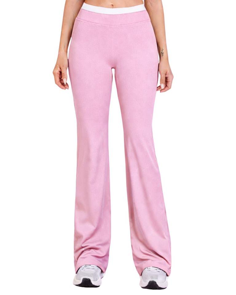 Women Light Pink White Contrast Sports Bra And Flare Pants Set High Waist Stretch Yoga Fitness Gym Wear Custom OEM Wholesale