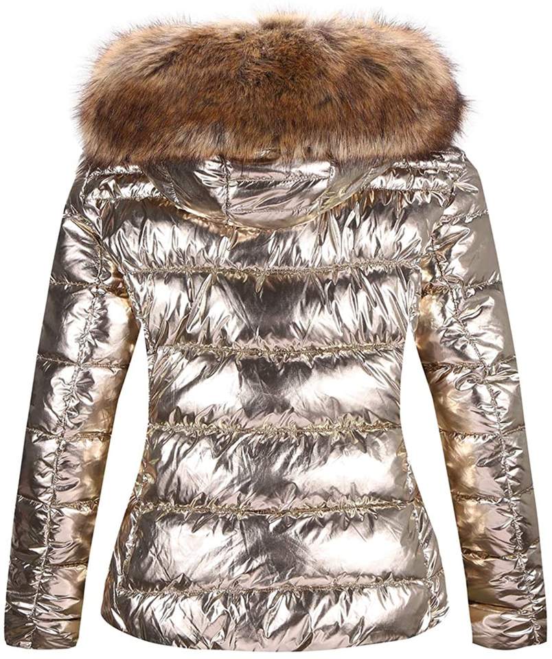 Women's Lightweight Waterproof Breathable Eco-Friendly Puffer Jacket Warm Hooded Fur Collar Winter Coat with Cotton Filling