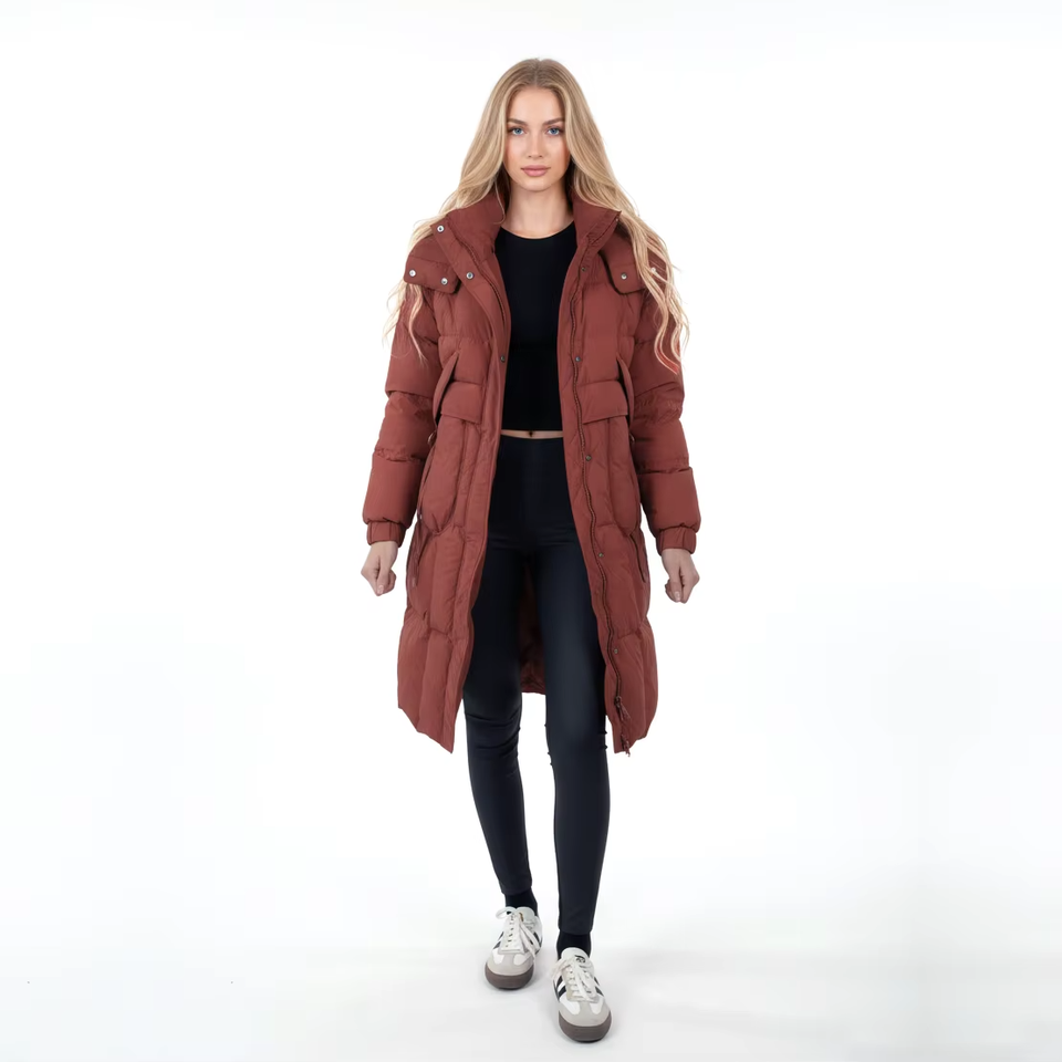 Women Long Puffer Coat Winter Warm Hooded Jacket Long Sleeve Parka Full Length Down Coats With Zip Bomber Outwear Jackets