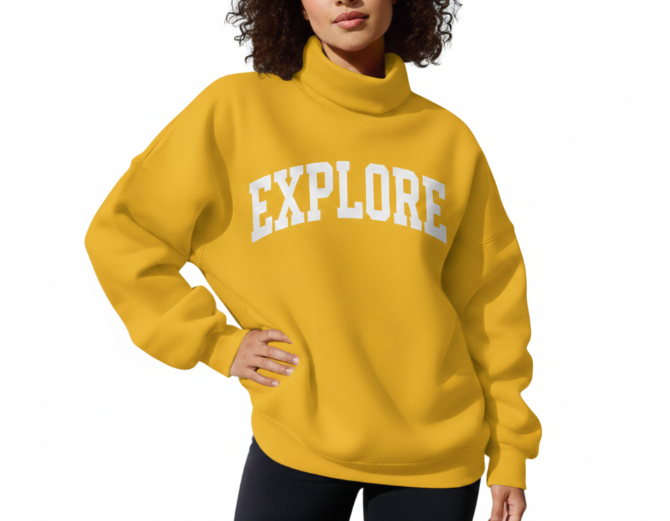 Women Long Sleeve Oversized Mockneck Winter Loose Fit Casual Top Front Design Modern Street Style for Comfortable Everyday Wear