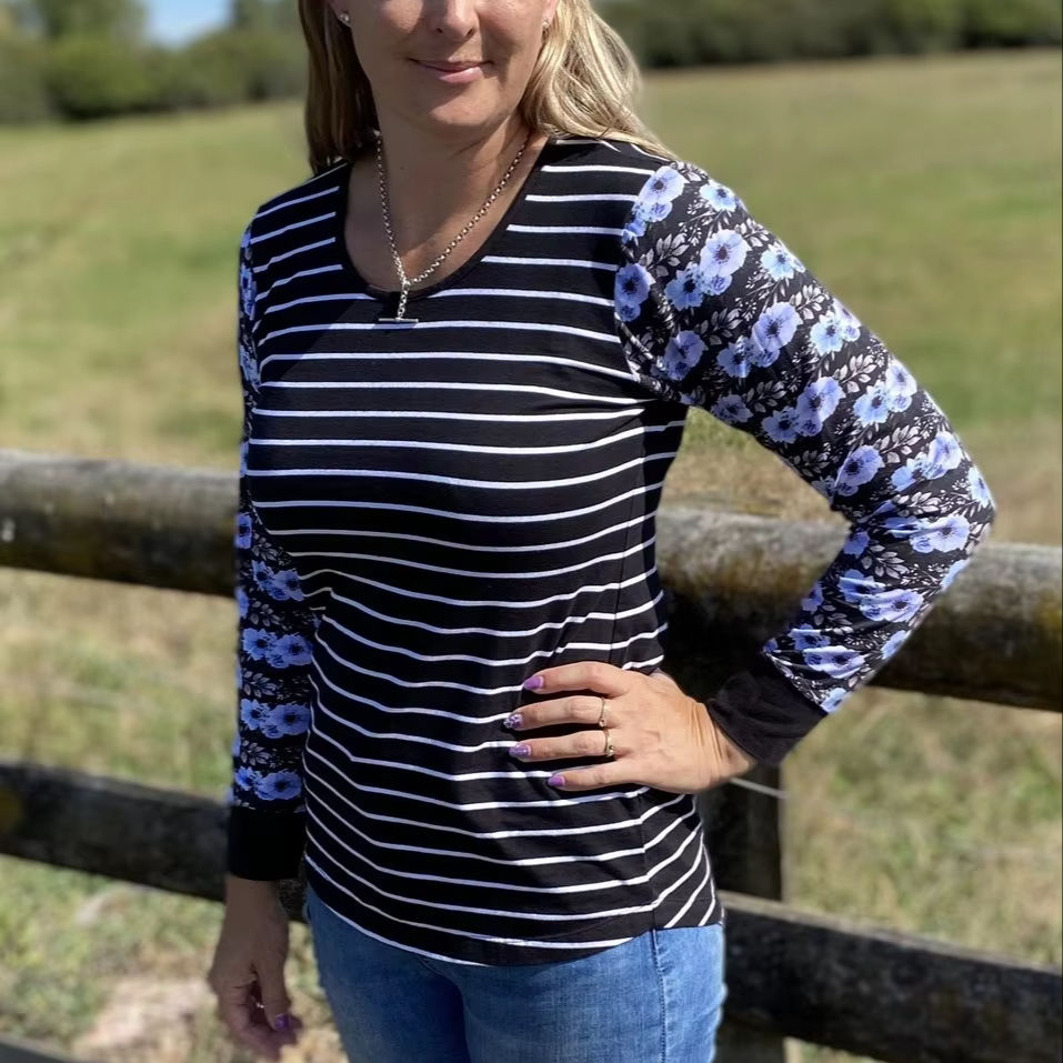 Women Long sleeve striped T-Shirt Modest Collarless Design with sleeve digital print