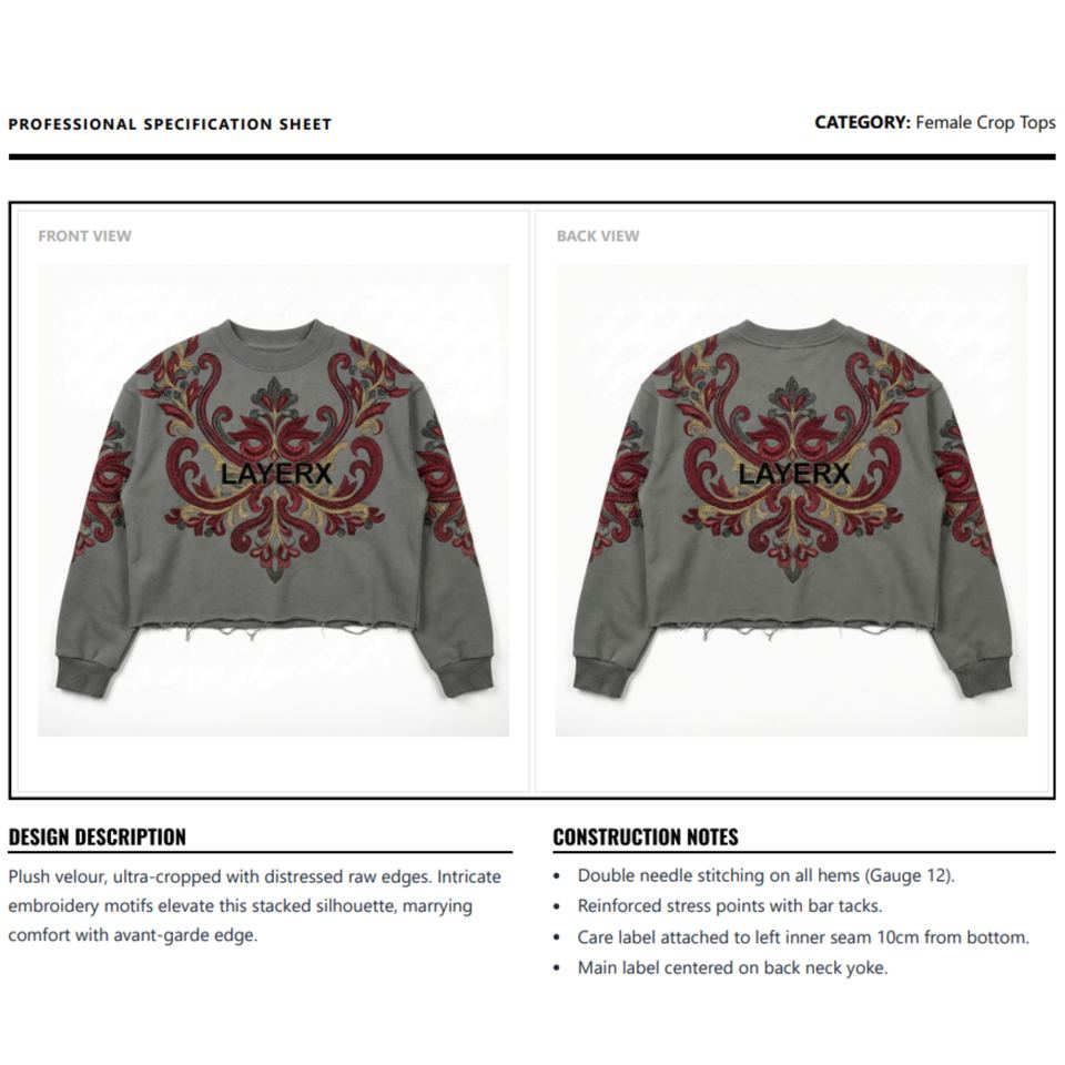 Women Loose Heavyweight Cotton Boxy Crop Top Custom 3D Print Character Embroidered High Street Vintage Distressed Hem Streetwear