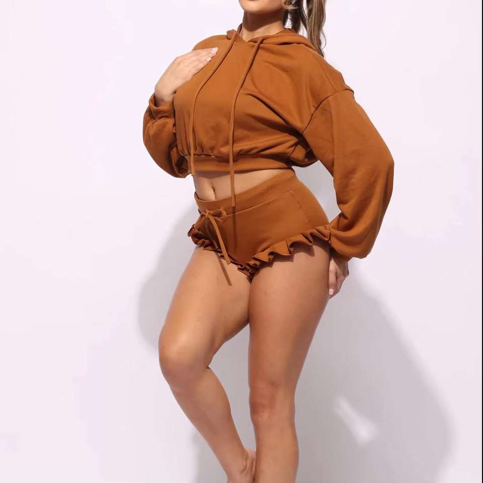 Women Lounge Golden Yellow Cropped Hoodie & Shorts 2piece Sports Set Female Clothes Cotton Terry Jogger XL Tracksuit Short Sets