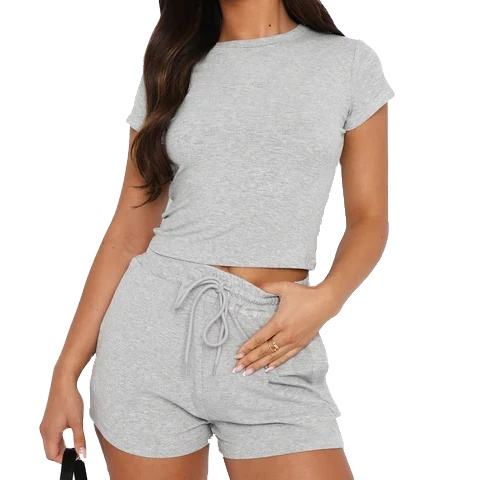Women Lounge Wear Custom Summer Two Pieces New Solid Color Short-Sleeved Crop T-Shirt Casual Shorts Legging Suit Set 2026
