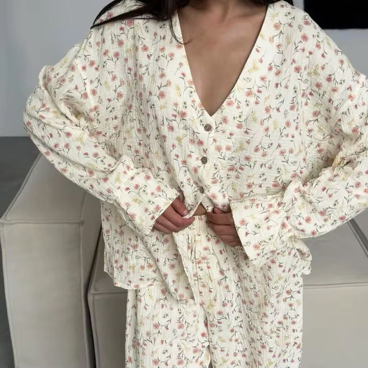 Women Loungewear Pajama Set Organic Cotton Breathable Fabric, Comfortable Sleepwear OEM ODM Custom Logo + Design + Colors