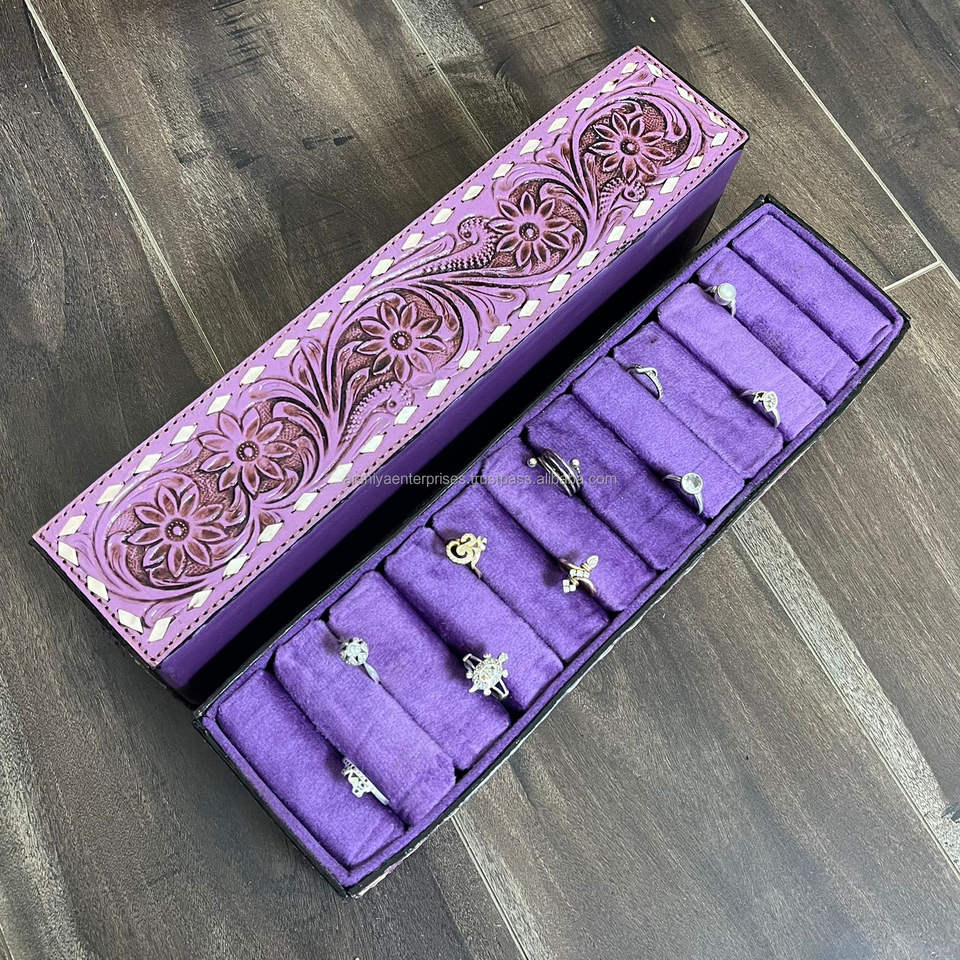 Women Luxury Fashion Portable Hand Tooled Genuine Jewelry Ring Display Organizer Box Stand Holder Earring Storage Case Showcase