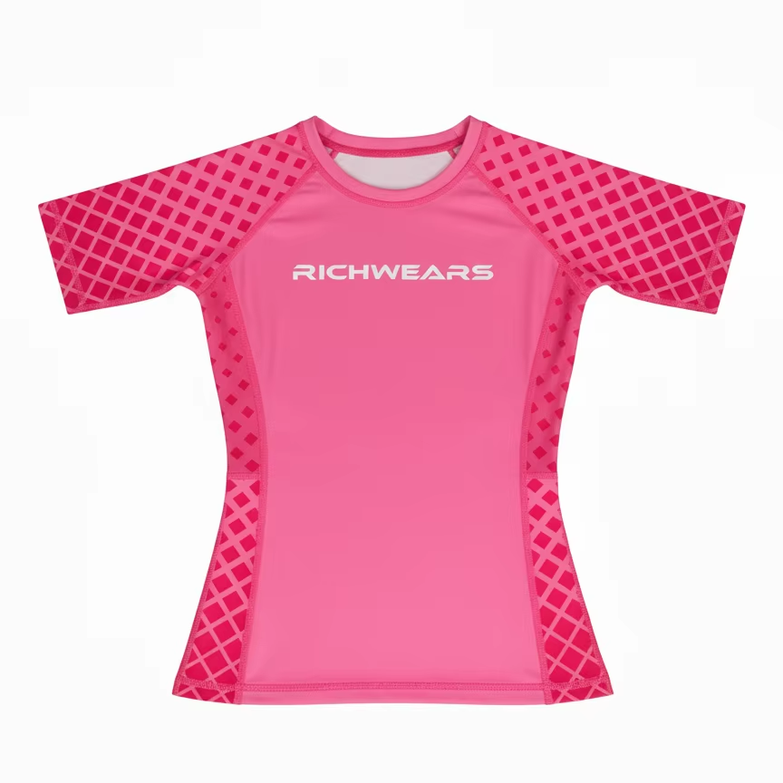 Women MMA BJJ Rash Guard Short Sleeve Quick Dry Breathable Compression Fight Wear for Swimming Surfing Combat Gear