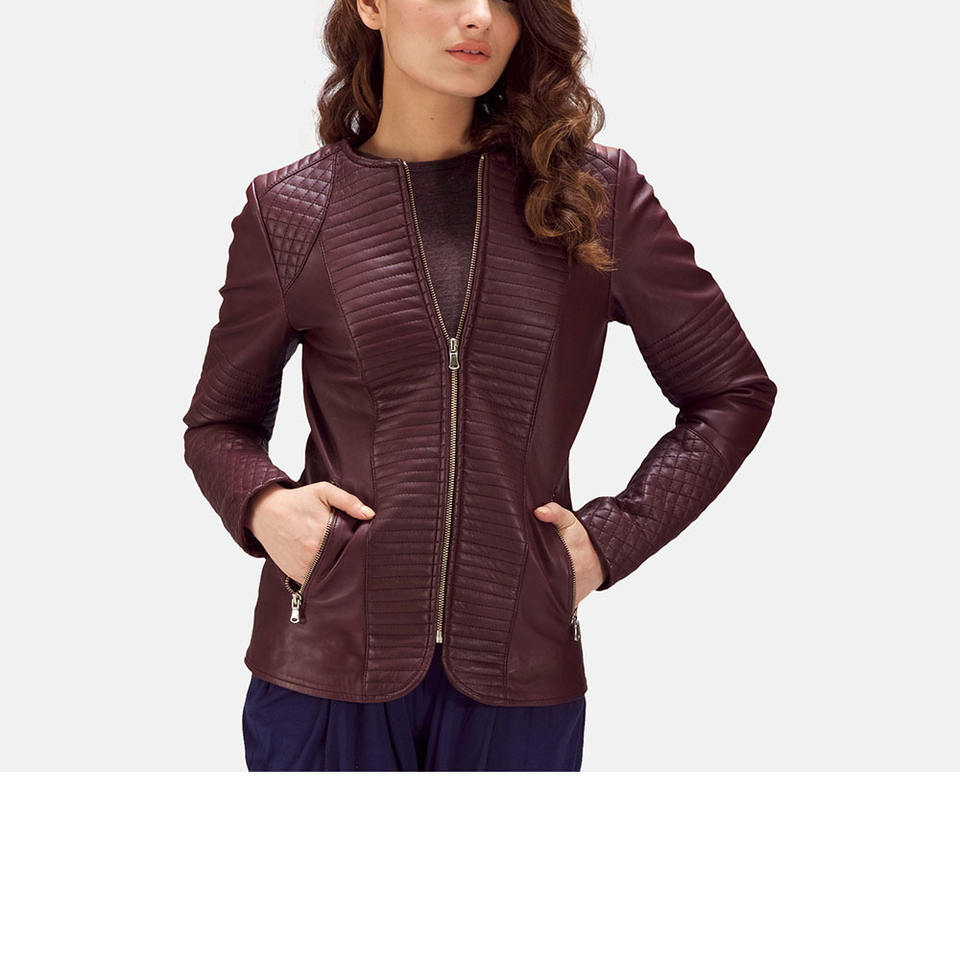 Women Maroon Quilted Leather Biker Jacket Stylish & Clean Fashion Women Biker Leather Jacket Genuine Sheepskin Leather Jacket