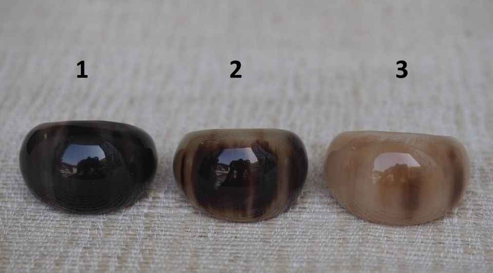 Women Men's Captivating Black Brown Stripes Buffalo Horn Ring Oval Shape Horn Rings for Wedding & Gift Occasions Accessories