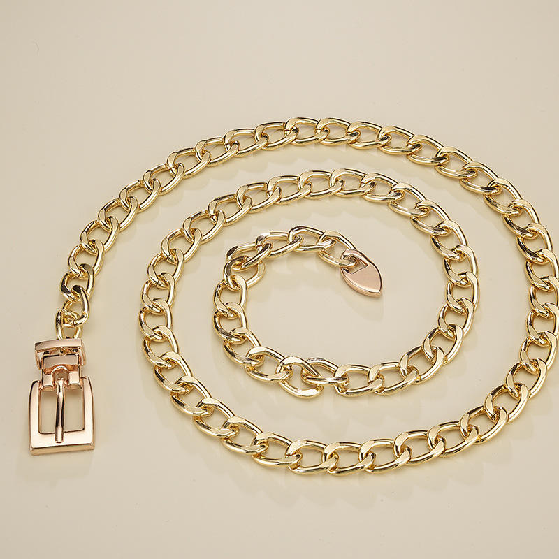 Women Men's Gold Chain Belt Alloy Chain Pin Buckle Belt Hip Hop Style Metal Chain Belt