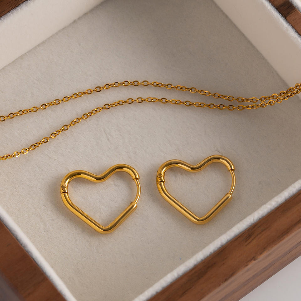 Women Minimalist Jewelry Earrings Stainless Steel Heart Love Shaped Stud Hoop Earrings Gold Plated 18K