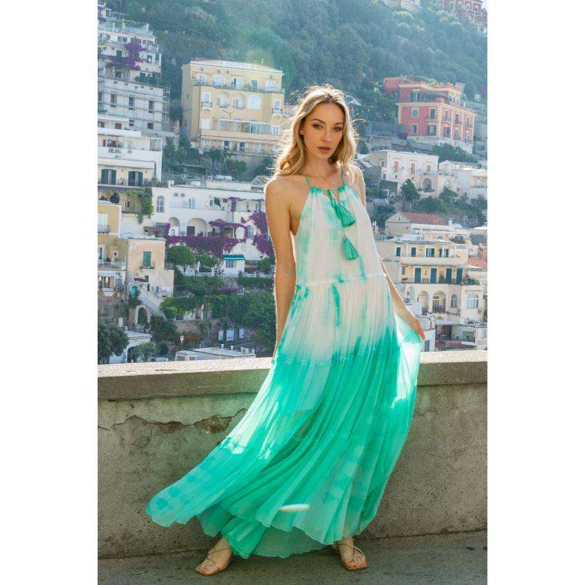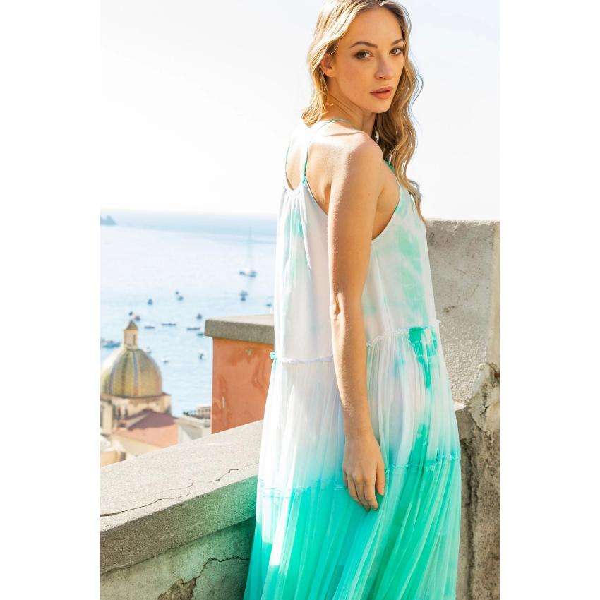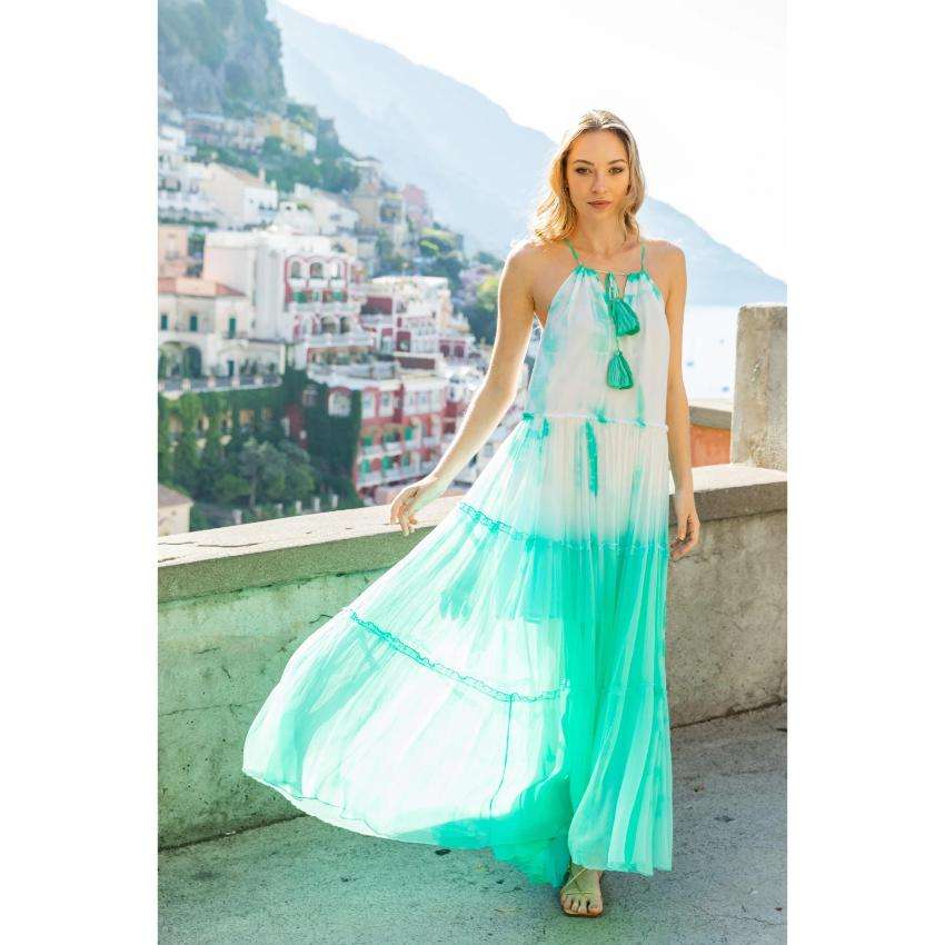 Women Mint Green Ombre Mini Dress Spaghetti Strap Long Sleeve Boho Beach Resort Wear Eco-Friendly Washable Sashes