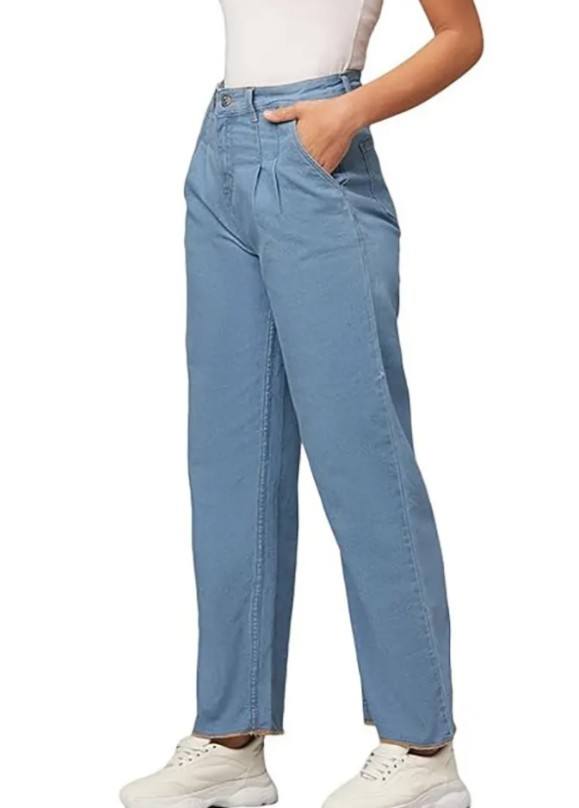 Women New Denim Oversize Plain Pants Casual Fit Cotton Jeans Pant Straight Leg Jeans for Women Trendy Denim Trousers Collection