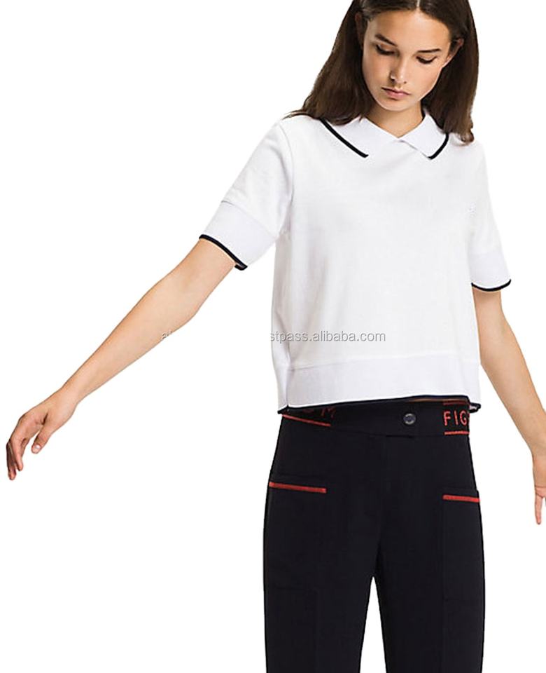 Women New Style Fashion Cheap Custom Blank Polo Shirts, Fitted Fashion Stripe Polo Shirt