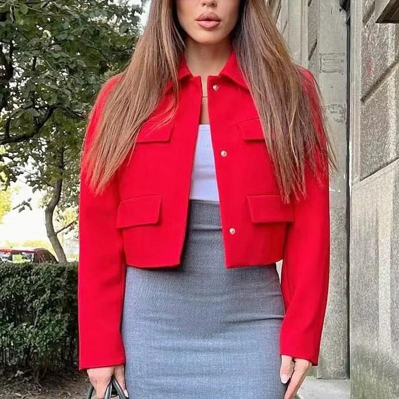 Women New Winter Collection Varsity Bomber Jacket Short Coat Cropped Blazer Autumn Long Sleeve Red Aviator Men's Jackets