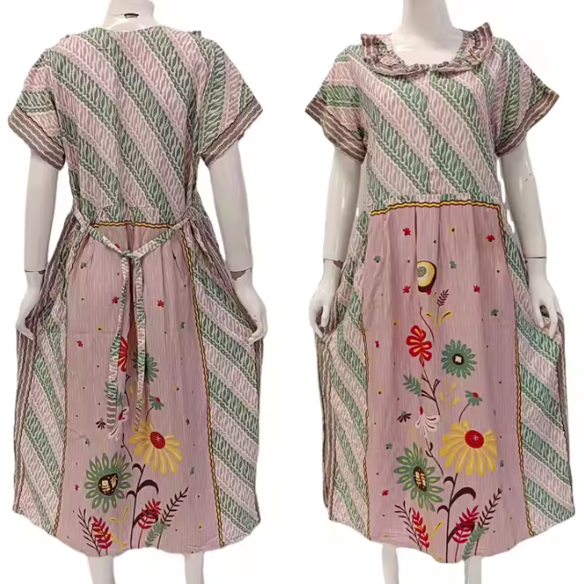 Women Square Collar Thermal Soft Breathable Summer Nightgown by Chrysanta Indonesian Batik Design