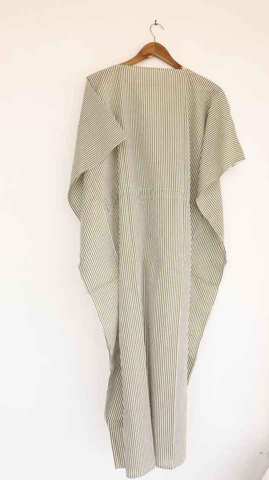 Women Olive Green Cotton Kaftan Dress Loose Fit Lounge Beach Maxi Dress