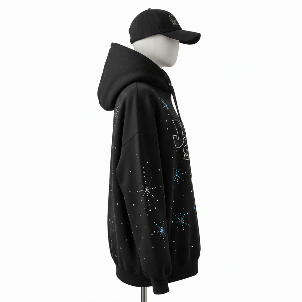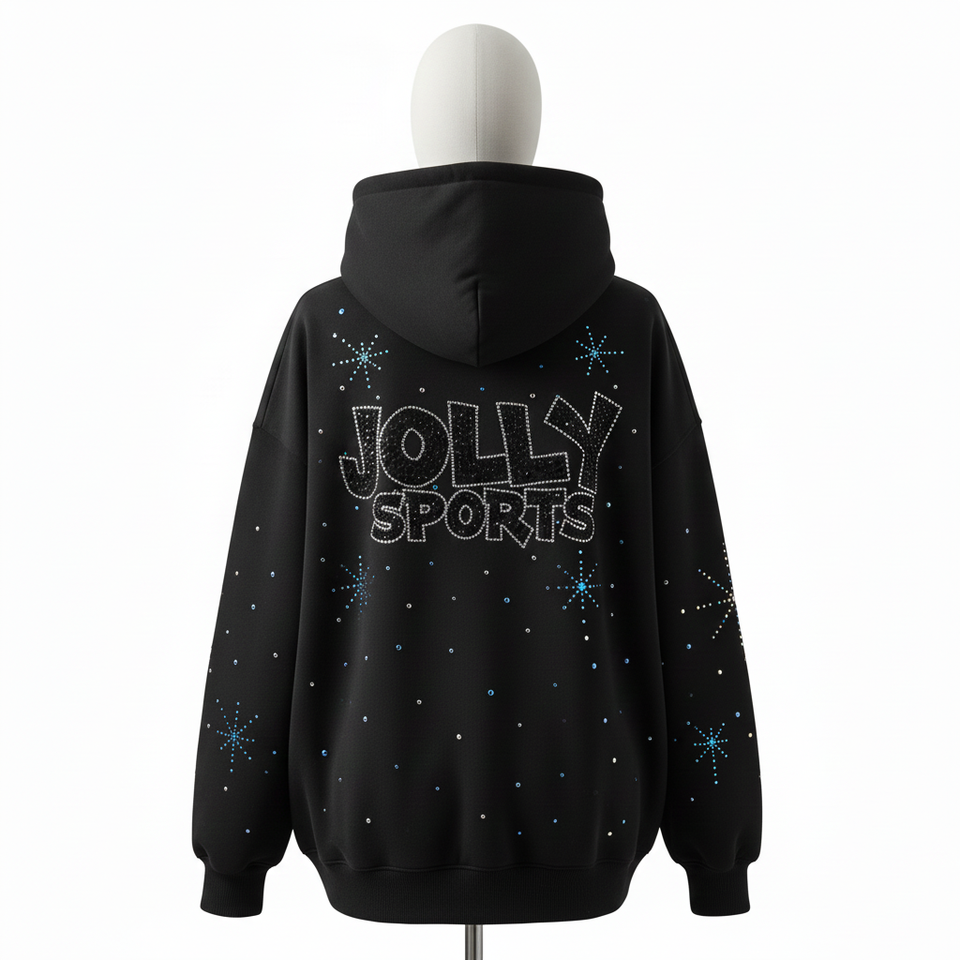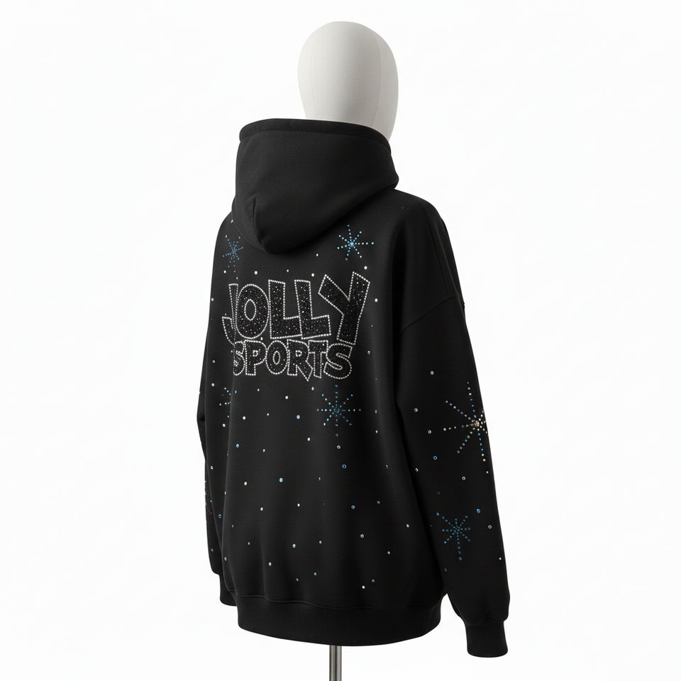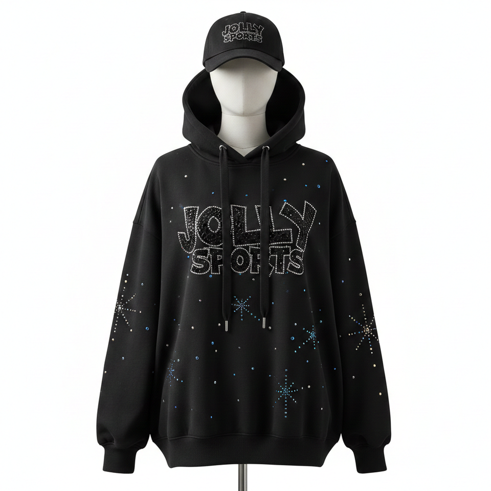Women Oversize Hoodie Premium Cotton Polyester Fleece 320 GSM Black Rhinestone Hotfix Custom Logo basics Hoodie