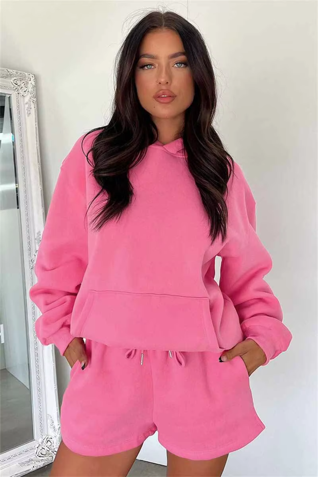 Women Oversized Hoodie Above Knee Shorts Set Regular Fit Soft Breathable Fabric Casual Summer comfort for Outfit Solid