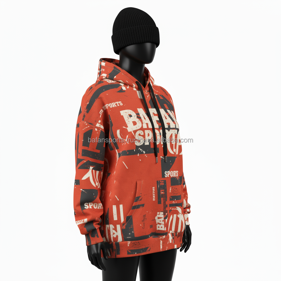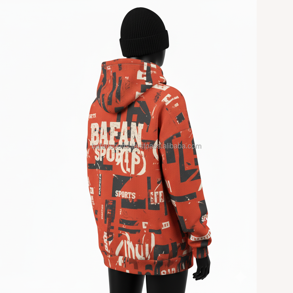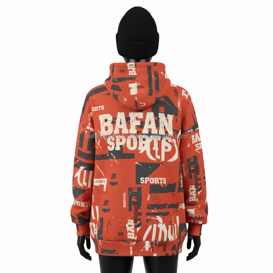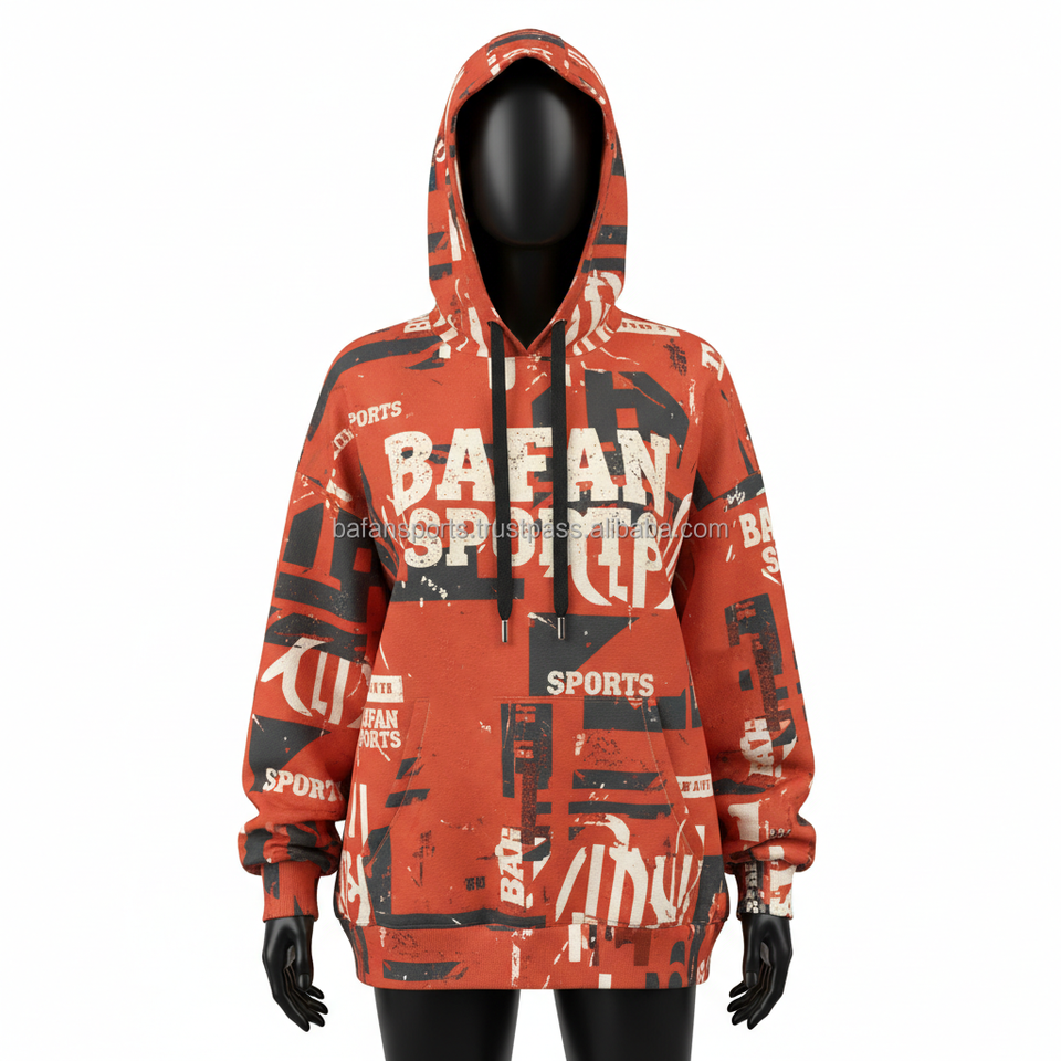 Women Oversized Hoodie Premium 330 GSM Cotton Fleece Rust Red Allover Print Custom Logo Screen Printed Women basics Hoodies