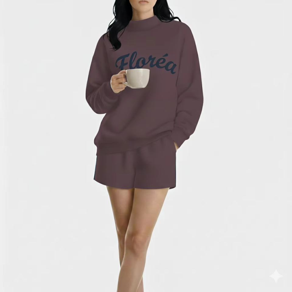 Women Oversized Mockneck Fleece Sweatshirt with Badge & Sequined Details Soft Cotton Blend Casual Winter Streetwear Top