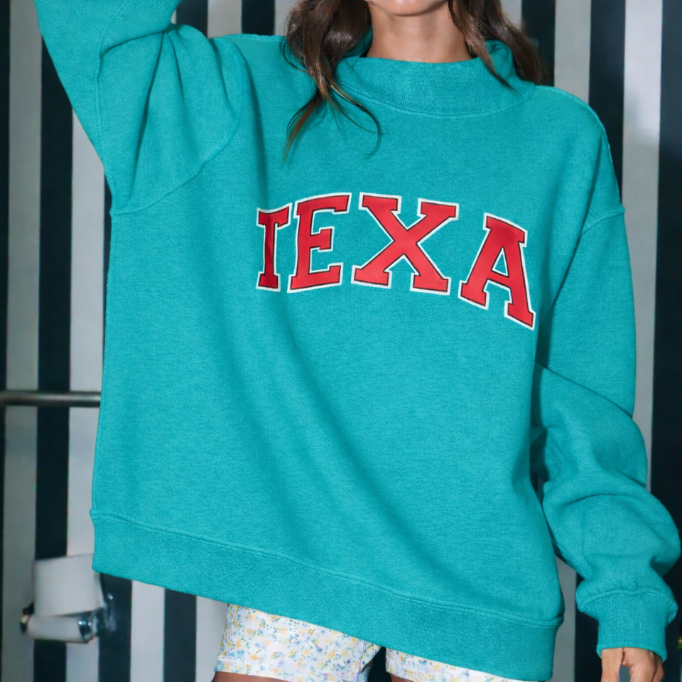 Women Oversized Stand Collar Printed Sequined Badge Long Sleeve Sweatshirt Minimal Style Autumn Winter Streetwear