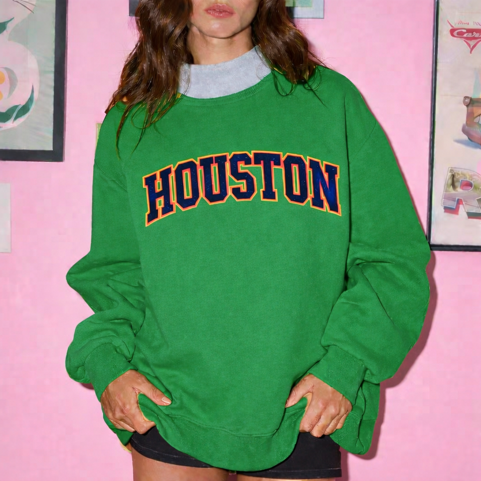 Women Oversized Stand Printed Sweatshirt Badge Sequined Embellishments Cozy Winter Wear Relaxed Fit Soft Fabric Casual Top