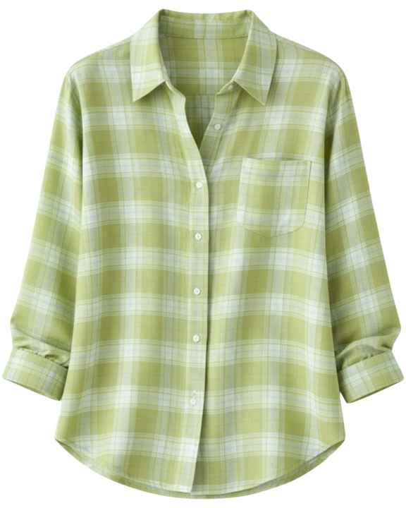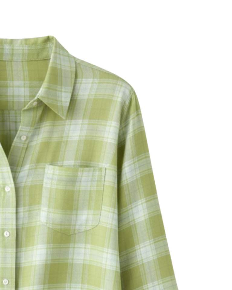 Women Oversized Plaid Button Up Shirt Light Green Long Sleeve Casual Flannel Checkered Tunic Top Soft Autumn Winter Wholesale