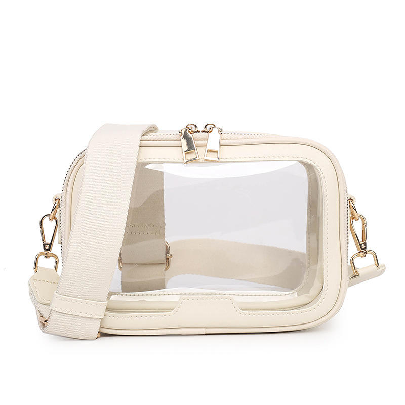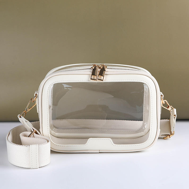 Women PVC Clear Crossbody Bag Stadium Approved Small Transparent Shoulder Handbag Concert Purse with Guitar Strap