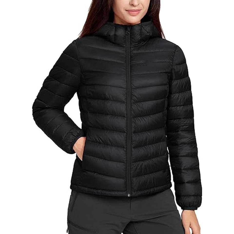 Women Packable Puffer Jacket Winter Lightweight Quilted Hooded Coat Water-Repellent Warm Outerwear Travel Windproof Down