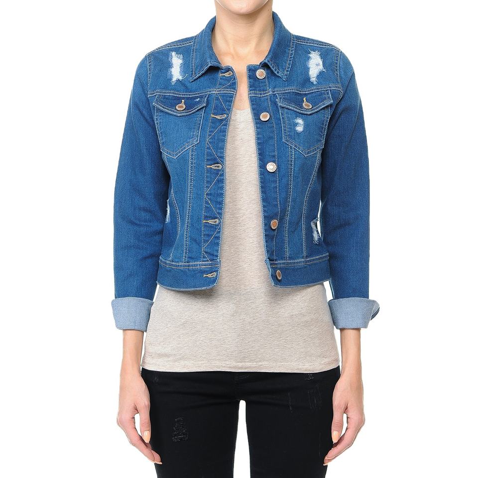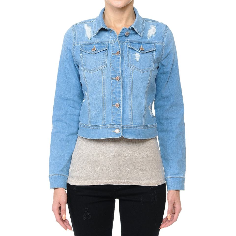 Women Plus/Junior Size Cropped Ripped Denim Jacket Long Sleeve Distressed Jean Coat Casual Streetwear Outerwear