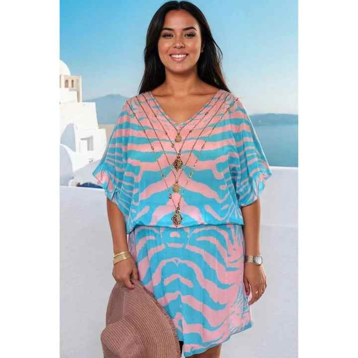 Women Plus Size Boho Kaftan Dress V Neck Loose Fit Summer Beach Dress Printed Resort Wear Tunic